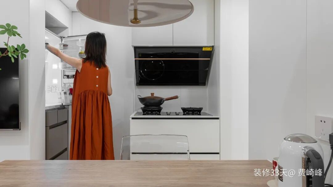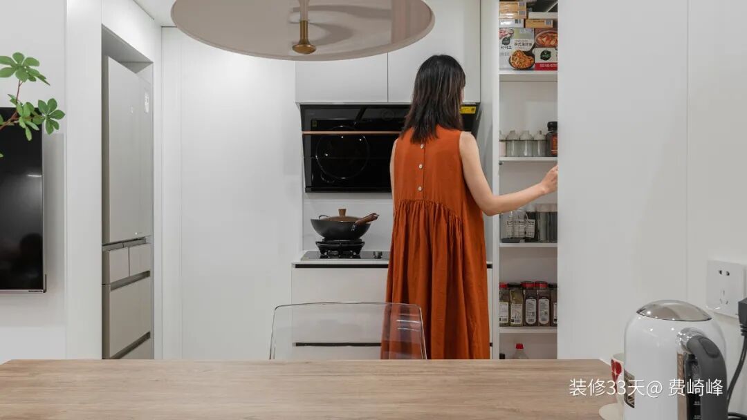 ▲ 多门冰箱做内嵌处理,在隐形美观的同时,也为餐厨补充了实用储物功能