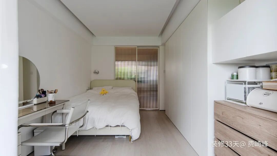 ▲ 卧室面积虽不大,仍在床尾规划出梳妆台,对面则设置一组合体柜,满足收纳与梳妆双重需求