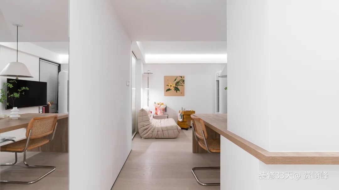 ▲ 客厅与餐厨开放式融合,借用原次卧半面墙体与窗洞,省去独立电视墙,空间更显通透开阔