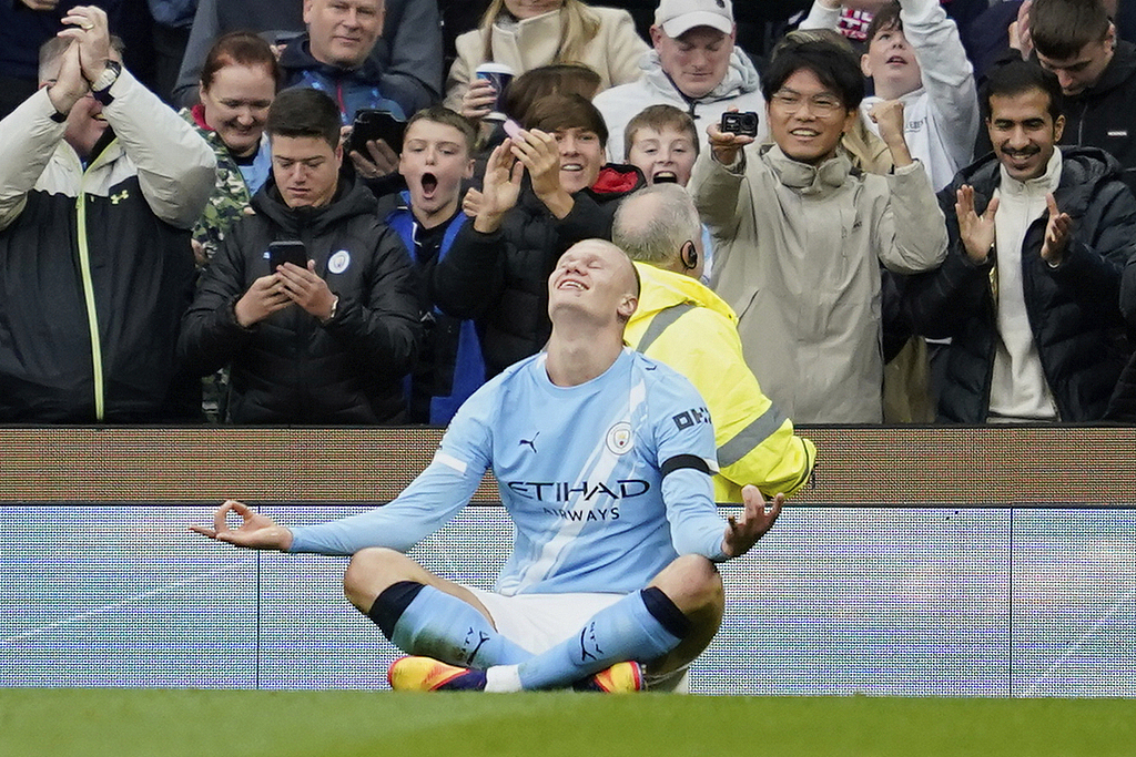 本场比赛哈兰德梅开二度,英超总进球来到90个。